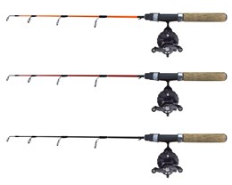Här tillsammans med fly reel FG28 med 2+1 BB och en utväxling på 2:4.1. Kommer färdigt med med påspolad isfiskelina. Läs mer om rullen under "Isfiskepö, rullar, linor"