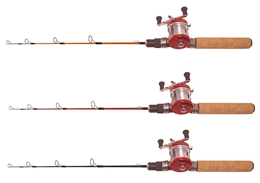 Här tillsammans med multirulle CL25L/R 1+1 BB och en utväxling på 3:8.1. Kommer färdigt med med påspolad isfiskelina. Läs mer om rullen under "Isfiskepö, rullar, linor"