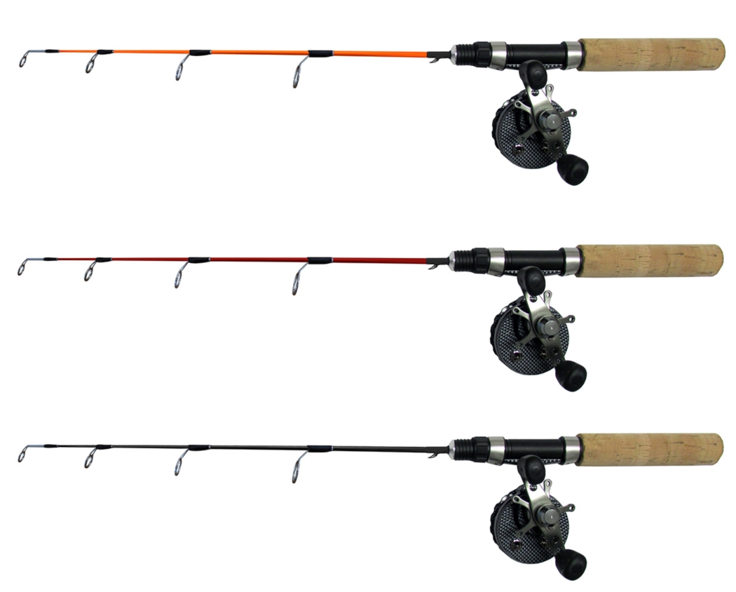 Här tillsammans med snygga fly reel FLY30 med 5 BB och en utväxling på 2:4.1. Kommer färdigt med med påspolad isfiskelina. Läs mer om rullen under "Isfiskepö, rullar, linor"