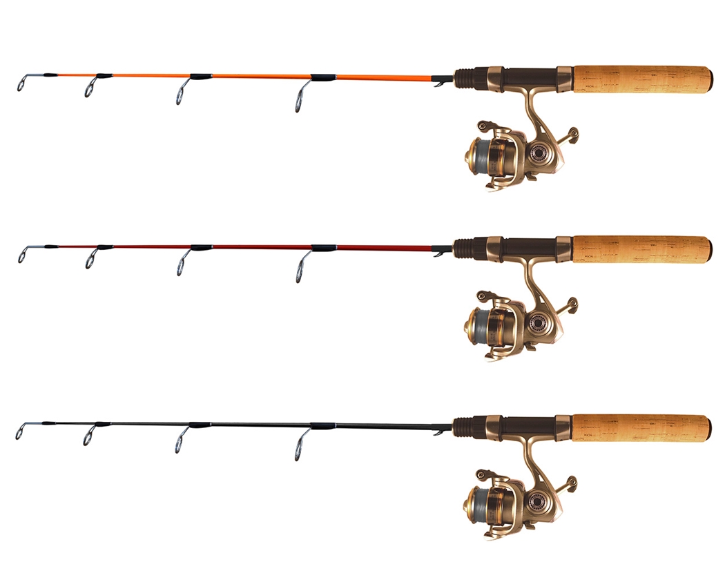 Här tillsammans med två haspelrullar.MN150 med 5+1 BB och T100 med 1 BB. Båda har en utväxling på 5:2.1 och kommer färdigt med spolad lina. Läs mer om rullarna under "Isfiskepö, rullar, linor"